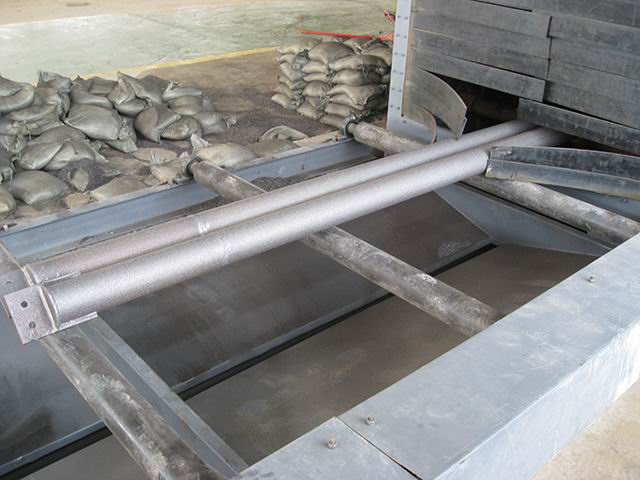 后工件表面表面的光潔度和粗糙度符合有關(guān)的標(biāo)準(zhǔn)規(guī)定。小口徑的鋼管使用內(nèi)壁噴丸機,鋼管內(nèi)壁噴丸處理線,主要包括移動臺車,砂斗,噴砂罐,噴槍,噴槍承載車,鋼管承載系統(tǒng),底部彈丸